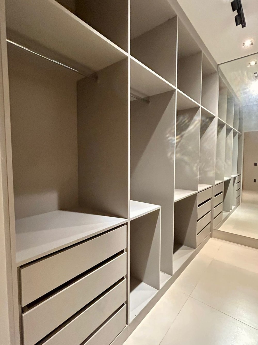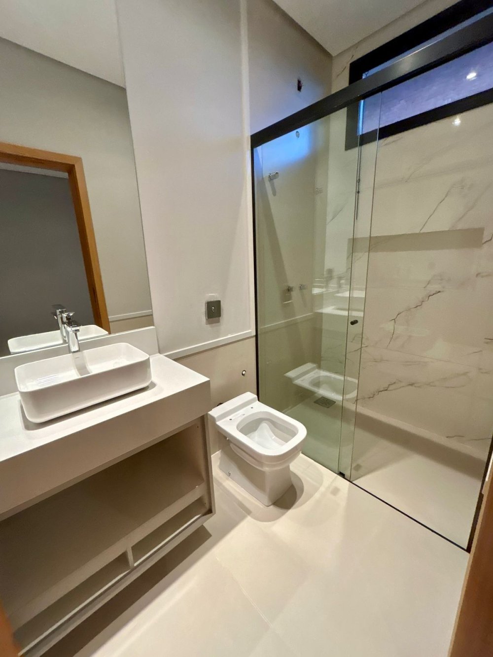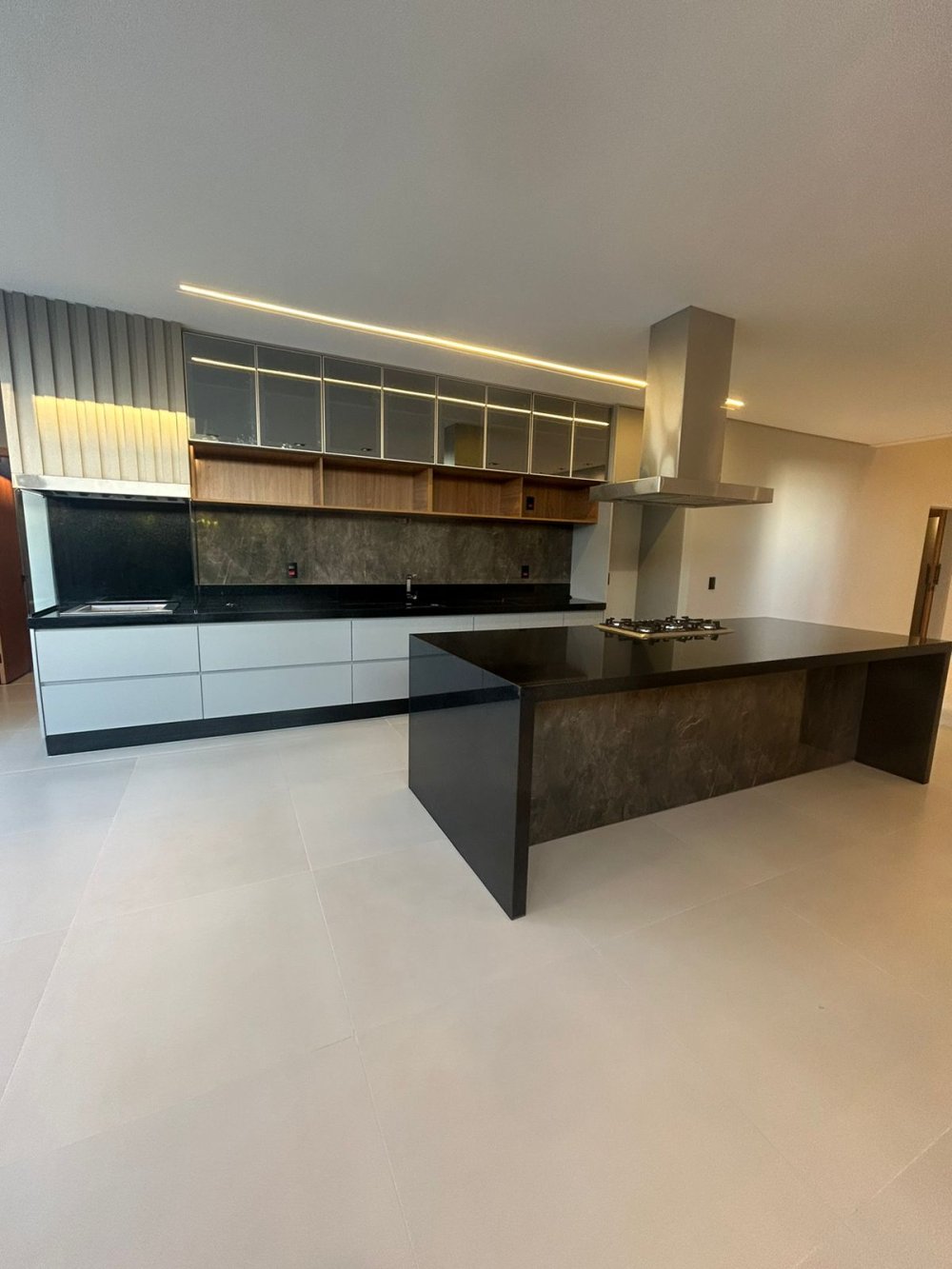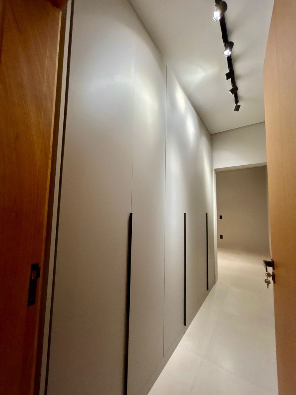 03 suítes com móveis planejados (sendo a master com closet) e portas balcão. Sala com pé direito duplo, jardim de inverno e painel de TV em porcelanato, escritório com bancada e prateleiras. Área gourmet repleta de armários com vidros reflecta bronze, fogão cooktop 5 bocas, coifa de ilha em inox e churrasqueira. Banheiro social com box e chuveiro e lavanderia coberta com acesso ao corredor externo. Destaque no paisagismo para o jardim vertical anexo à área gourmet com sistema de irrigação automatizado. Já a área de lazer contempla uma linda piscina (6,75m x 2,85m) com revestimento em porcelanato, ampla prainha, cascata revestida em pedra moledo, hidromassagem e iluminação LED. Conta ainda com um chuveirão de banho lateral.