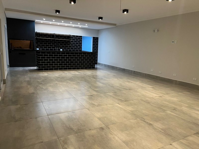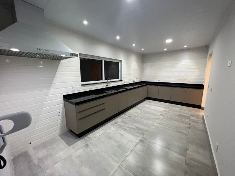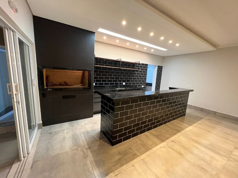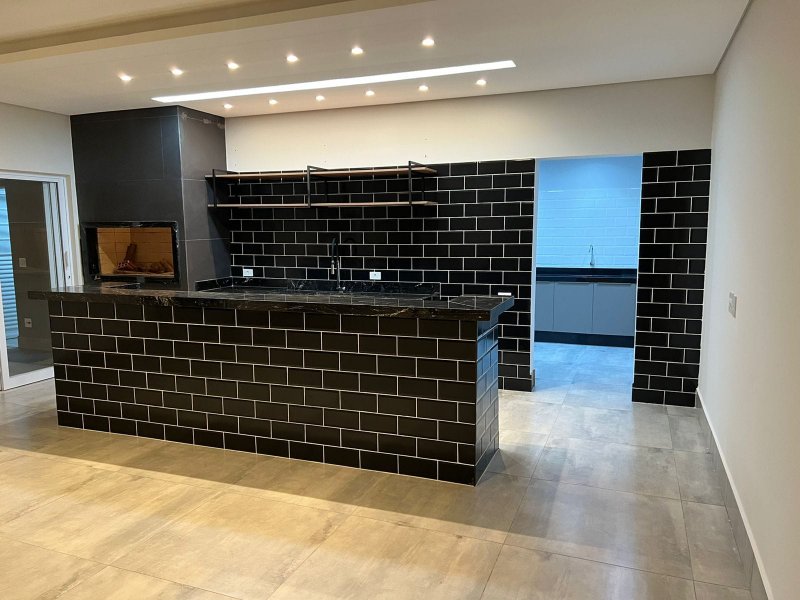 salão para festas, reuniões ou eventos com bancada em granito com móveis planejados no balcão e churrasqueira