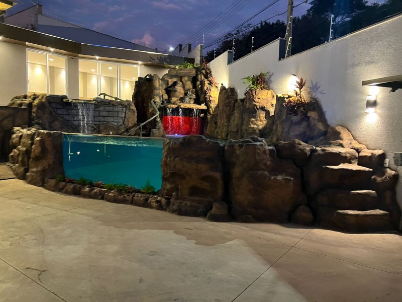 piscina estilo natural com cascatas, aquecida, com hidromassagem para 8 pessoas e lindo paisagismo